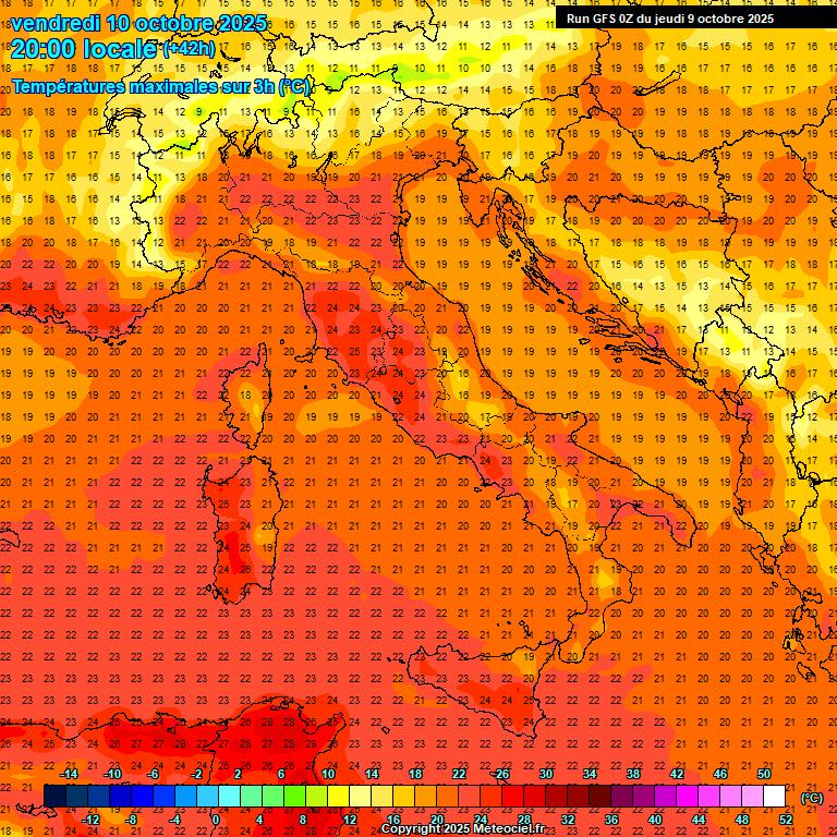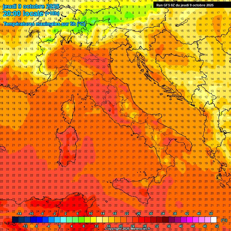 Temperature in aumento al Sud, in lieve aumento al Centro Nord. Punte massime locali di 25/26°C su Sardegna e Sicilia.