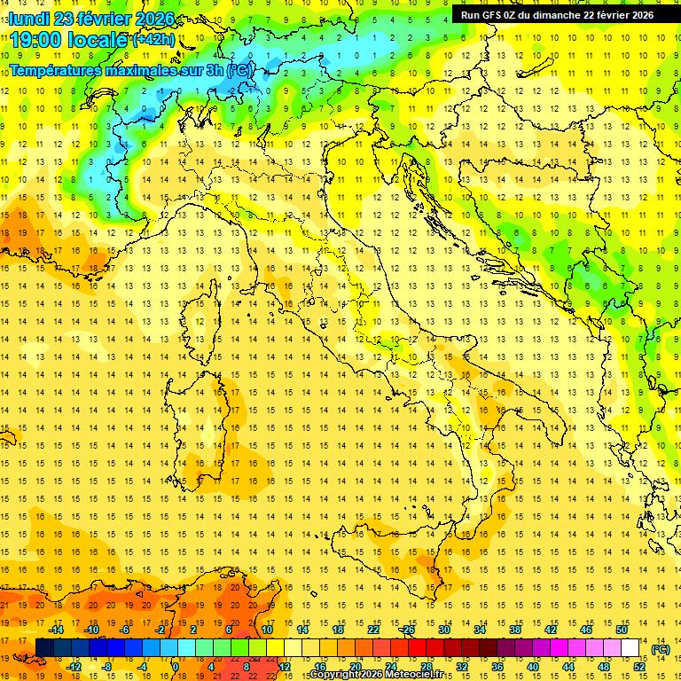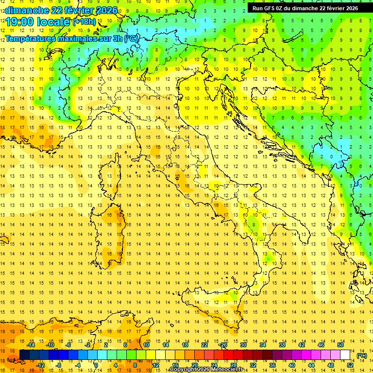 Temperature in aumento al Sud, generalmente stazionarie altrove. Punte massime locali di 19°C sulla Sicilia orientale.