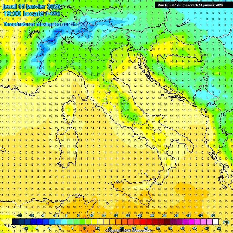 Temperature in ulteriore aumento su tutte le zone con punte massime locali di 16/17°C su Sardegna e Sicilia.