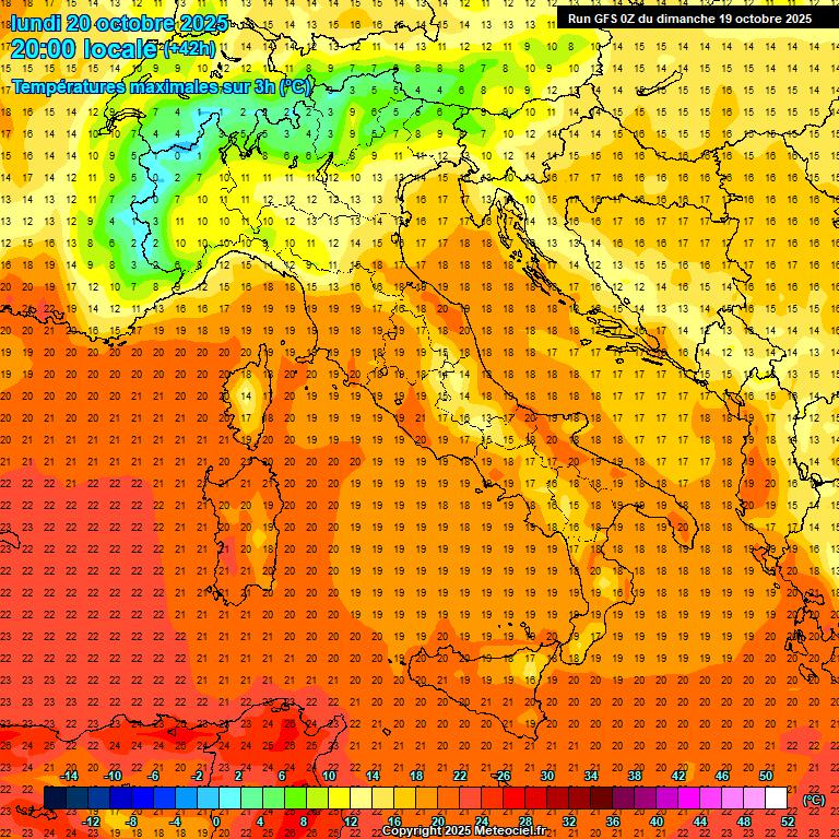 Temperature in lieve diminuzione al Nord, in lieve aumento al Centro Sud. Punte massime locali di 22/23°C sulla Sardegna.