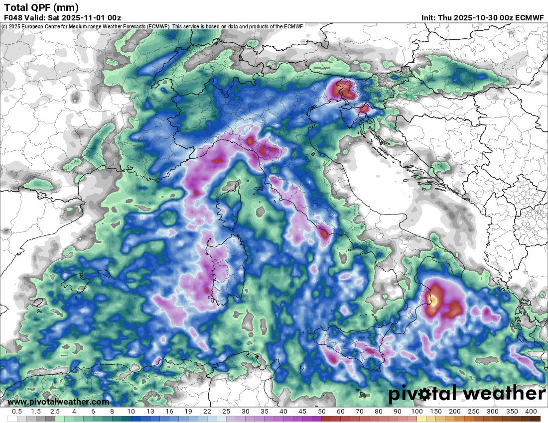 Weekend di Ognissanti tra anticiclone con prevalenza di bel tempo nella giornata di sabato e nuove piogge domenica specie al Nord ed alta Toscana con nevicate sulle Alpi specie centro orientali nella serata di domenica e prima parte di lunedì con quota neve in calo fin verso i 1500/1600 metri.