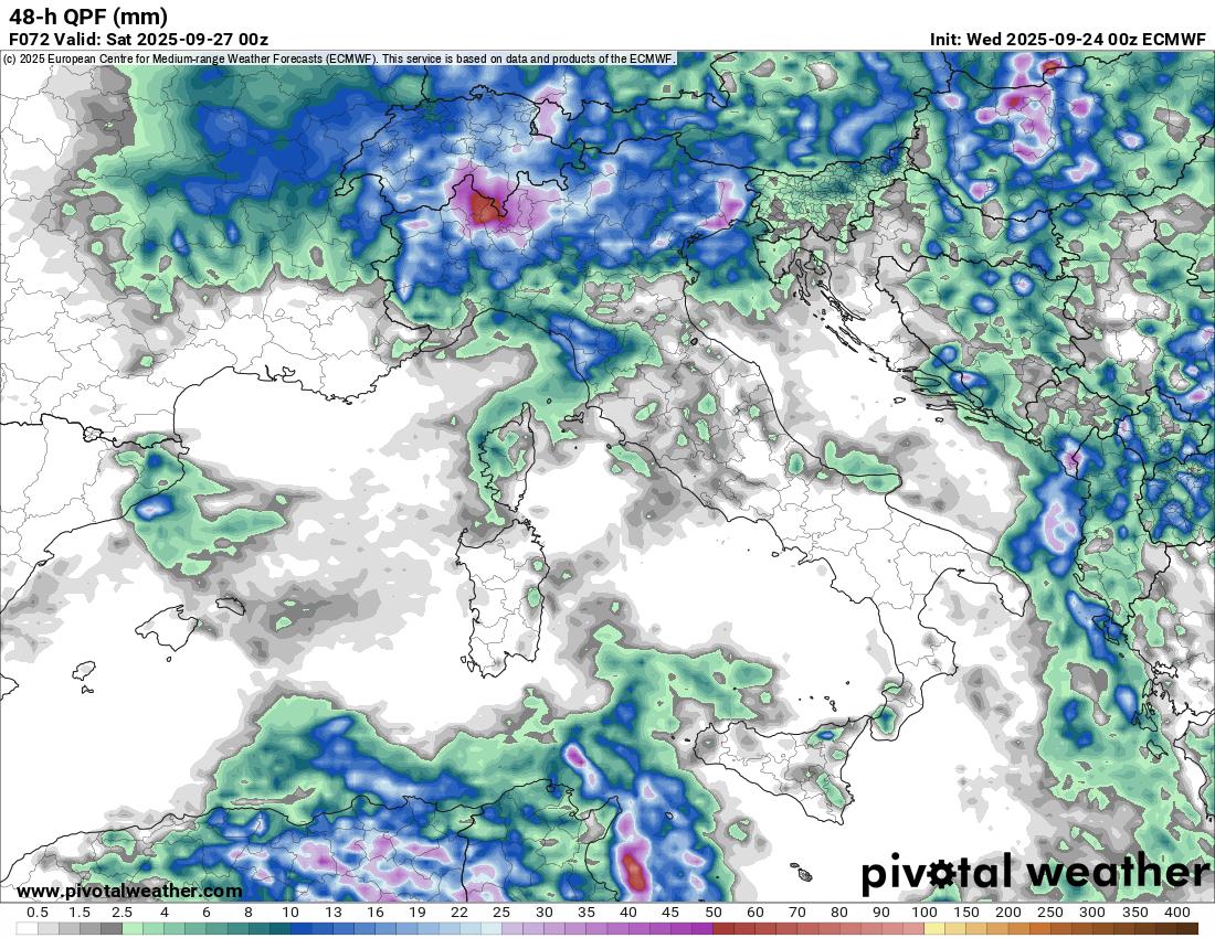 In serata e nella notte rovesci sparsi su Piemonte centro settentrionale, Valle d'Aosta e Liguria centro orientale, precipitazioni locali sul resto delle Alpi, Lombardia, Veneto, Friuli Venezia Giulia ed alta Toscana, variabile sulle restanti zone. Quota neve sulle Alpi in calo fin verso i 1900/2000 metri.