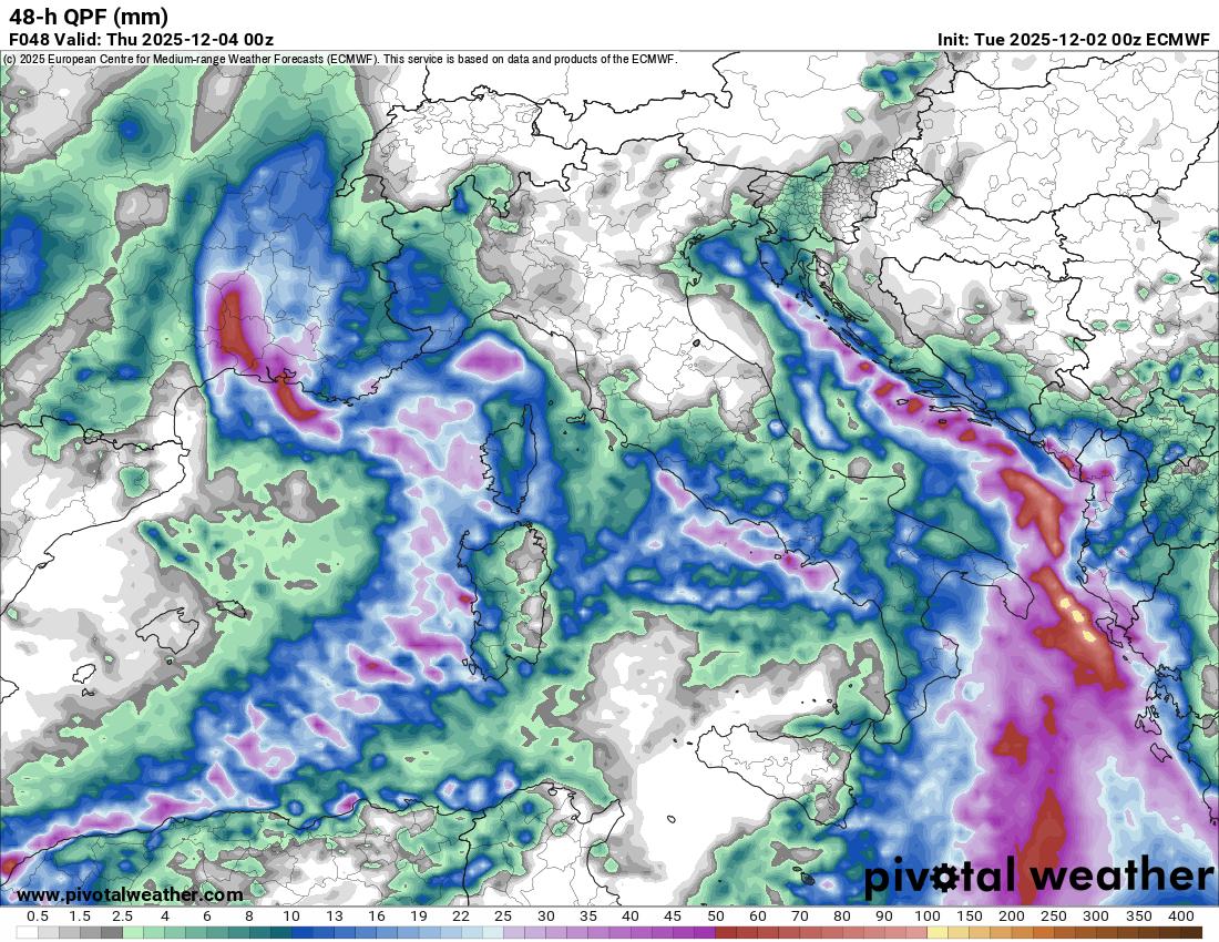 In mattinata precipitazioni sparse su Lazio e nord Campania, locali su Abruzzo, Molise, Sardegna occidentale e Puglia meridionale, variabile sulle restanti zone.