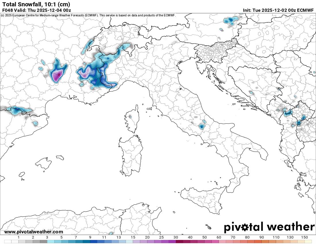 In serata locali precipitazioni su Liguria centro occidentale, Piemonte, Valle d'Aosta, Campania meridionale, Basilicata e Puglia meridionale, occasionali su Sardegna sud occidentale e tra Veneziano e Triestino, variabile altrove. Quota neve su Alpi occidentali attorno a 800/1100 metri.