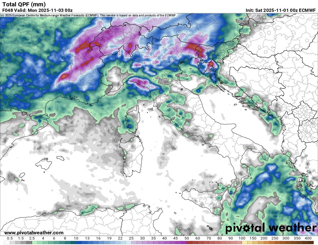 Nel pomeriggio precipitazioni diffuse su Alpi centro orientali, Veneto, Friuli Venezia Giulia e tra Liguria orientale ed alta Toscana, sparse sul resto del Nord Est e Lombardia orientale, locali su Valle d'Aosta, nord Umbria e nord Lazio, variabile sulle restanti zone. Quota neve sulle Alpi centro orientali in calo fin verso i 1800 metri.