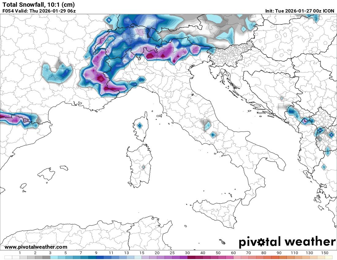 In serata precipitazioni diffuse su Appennino settentrionale, centro nord Sardegna, Lazio, Toscana, Liguria, Lombardia, Piemonte, Trentino e Veneto centro meridionale, sparse sul resto del Nord, Appennino centrale e resto della Sardegna, locali su Romagna e Marche, variabile altrove. Quota neve sulle Alpi attorno a 600/1000 metri, su Appennino settentrionale attorno a 1100/1200 metri.