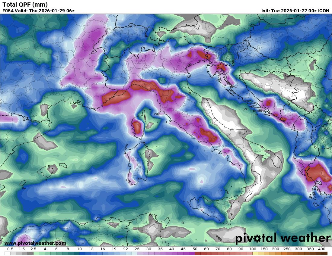 In serata precipitazioni diffuse su Sicilia, Calabria tirrenica, Campania e Lazio meridionale, sparse sul resto del Lazio, Appennini ed Alpi centro orientali, locali sul resto del Nord Est e centrali tirreniche, variabile altrove. Quota neve sulle Alpi attorno a 800/1100 metri, su Appennino centro settentrionale attorno a 1000/1300 metri.