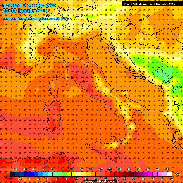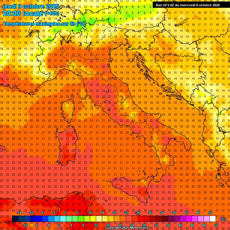 Temperature in aumento al Sud, in lieve aumento al Centro Nord. Punte massime locali di 25/26°C su Sardegna e Sicilia.