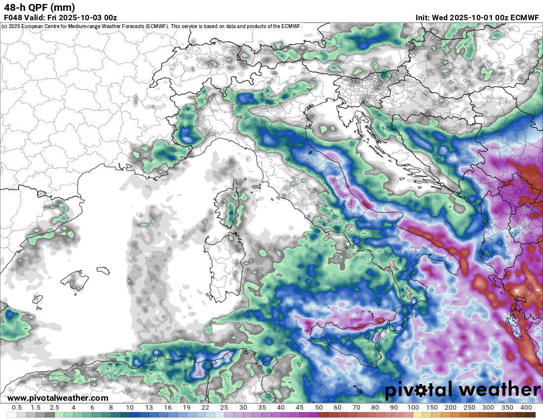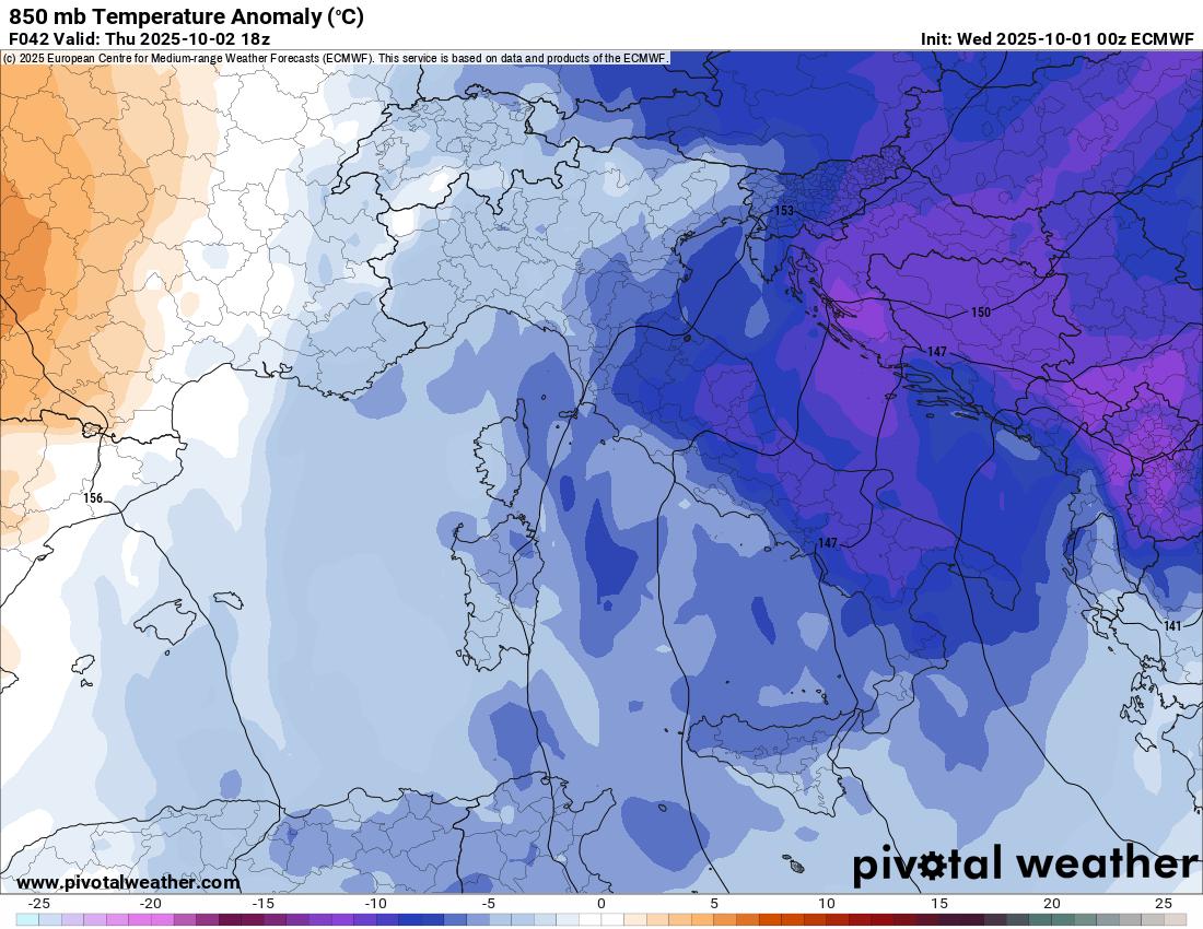In mattinata rovesci sparsi su Emilia centro orientale, Romagna, medio basso Adriatico, Sicilia e Calabria meridionale, locali su Emilia occidentale, Veronese, Bresciano, Bergamo e resto della Calabria, Basilicata e Toscana, occasionali su Liguria e Piemonte meridionale, variabile sulle restanti zone. Quota neve su Appennino centrale attorno a 2300/2500 metri.