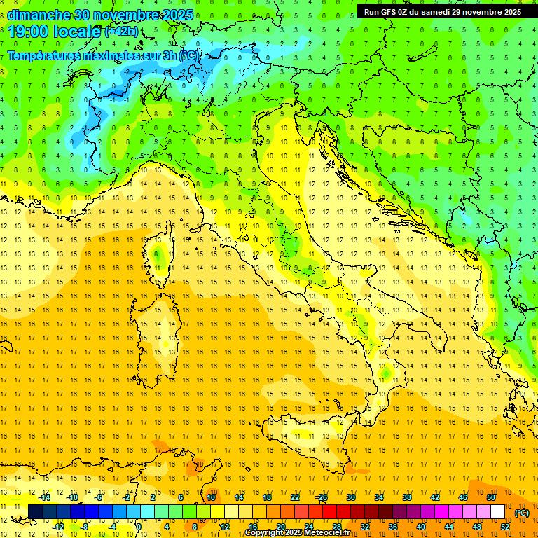 Temperature in lieve aumento al Centro Sud, stazionarie al Nord. Punte massime locali di 17°C su Sardegna e Sicilia.