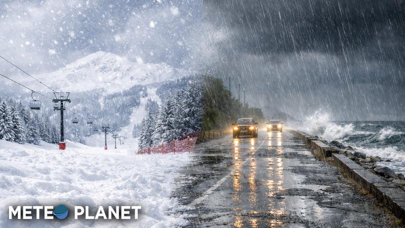 Maltempo diffuso oggi con pioggia, neve in Appennino centro settentrionale e parte delle Alpi, venti forti e mari agitati con burrache e mareggiate.