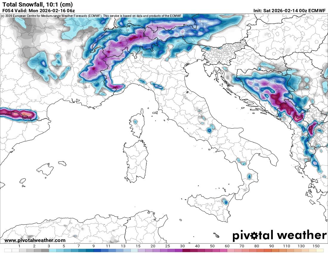 In serata precipitazioni diffuse su Emilia Romagna, Marche, Abruzzo e Campania, sparse sul resto del medio adriatico, Appennino centro meridionale e Sicilia occidentale, locali su nord Calabria e nord Sardegna, variabile altrove. Quota neve su Appennino centro settentrionale attorno a 1100/1400 metri in graduale calo durante la notte e prime ore del mattino di domenica.
