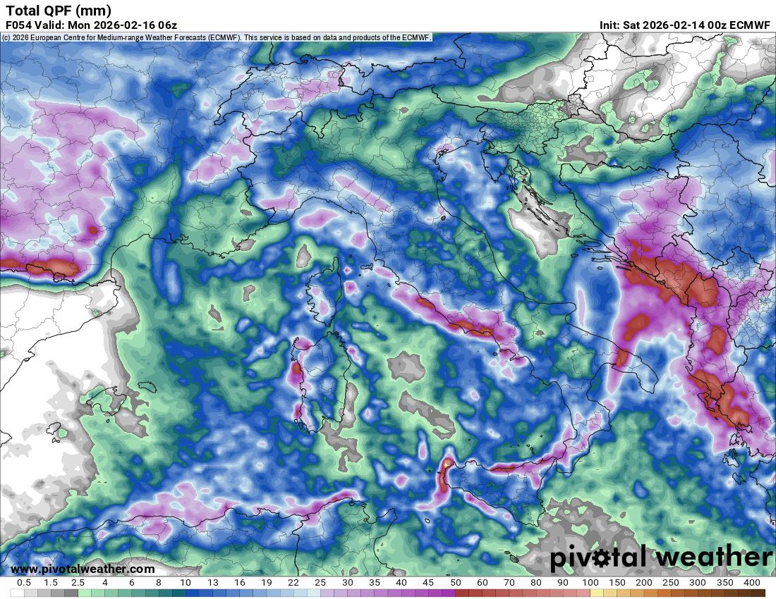 Nel pomeriggio precipitazioni diffuse su Emilia Romagna, Veneziano, Triestino, Appennino settentrionale, Campania e Calabria tirrenica settentrionale, sparse su Veneto, Friuli Venezia Giulia, Sicilia occidentale, Appennno centro meridionale, Sardegna occidentale e Puglia meridionale, locali su Toscana e Sardegna occidentale, variabile altrove. Quota neve sulle Alpi attorno a 900/1200 metri su Appennino centro settentrionale attorno a 1200/1600 metri.