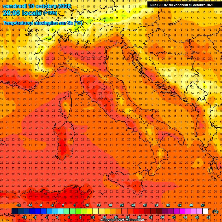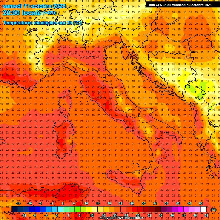 Temperature in lieve aumento al Sud e centrali tirreniche, stazionarie altrove. Punte massime locali di 26/27°C su Lazio, Toscana e Sardegna.