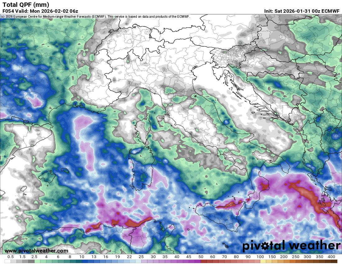 In mattinata precipitazioni diffuse anche localmente di forte intensità sulla Sardegna, sparse sulla Sicilia centro occidentale con rovesci in arrivo da ovest, locali su Campania e coste del Lazio, occasionali su Appennino settentrionale e Marche, variabile altrove.