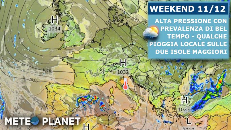 Nel pomeriggio variabile su Sardegna centro meridionale e Sicilia orientale, generalmente sereno o poco nuvoloso sul resto del paese.