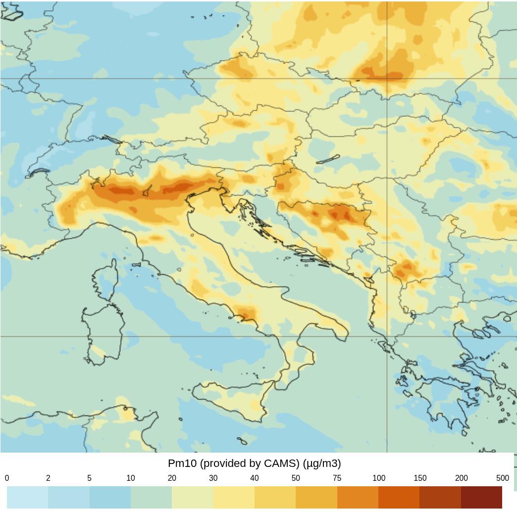 Livelli di smog in aumento con concentrazioni di particolato PM10 che potranno raggiungere e localmente superare anche i 100 µg/m³ specie nei grandi centri urbani delle pianure di Lombardia, Veneto ma anche sull'Emilia occodentale.
